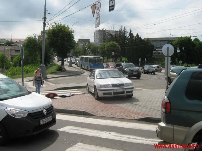 23 червня у Вінниці перед Центральним мостом сталася дорожньо-транспортна пригода. Власниця автомобіля Skoda Octavia не справилась з керуванням та вискочила на ділянку посеред перехрестя, призначену для очікування пішоходів. На шляху машина знесла дорожній знак та поранила перехожого чоловіка.