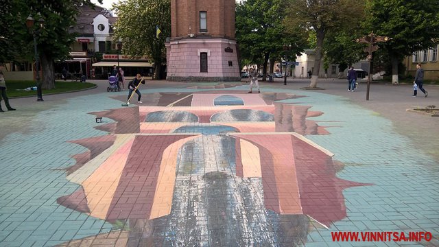 На площі Європейська у Вінниці місцеві художники оновили 3D-малюнок, який знаходиться під Вежею. На місці річки з водоспадом тепер підземелля.