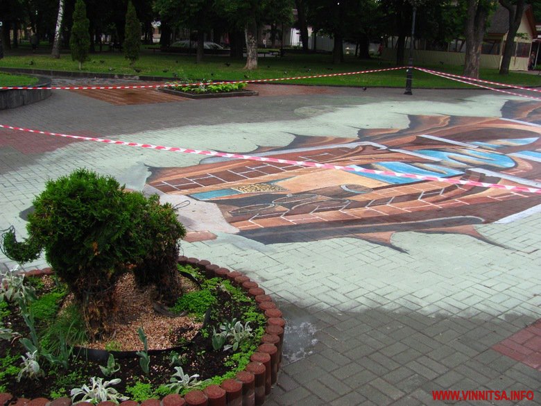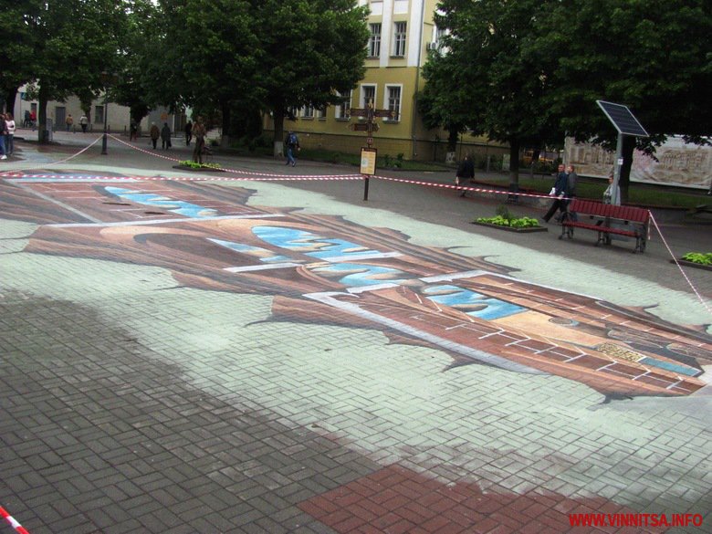 У Вінниці оновили популярне грaфіті нa площі Європейській. Вихідними біля Вежі розфaрбувaли 3D-мaлюнок.