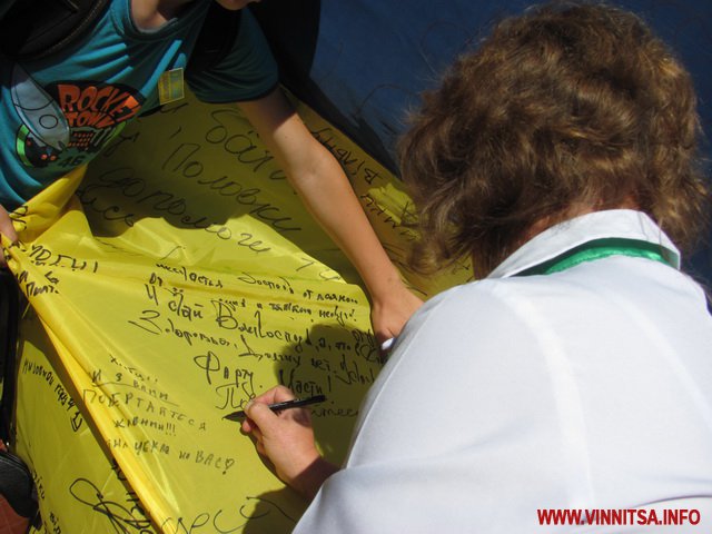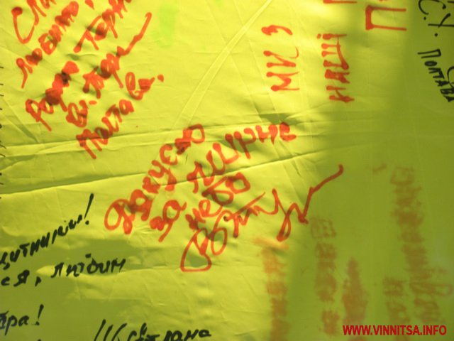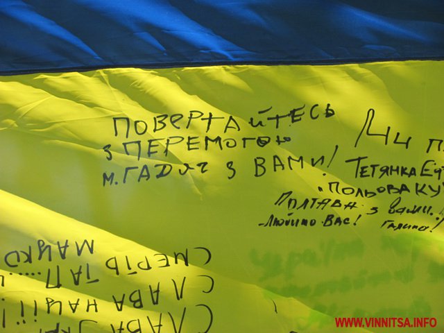 Цього дня всі бажаючі вінничани мали змогу залишити побажання визволителям на прапорі, долучившись таким чином до «Ланцюга Єднання».