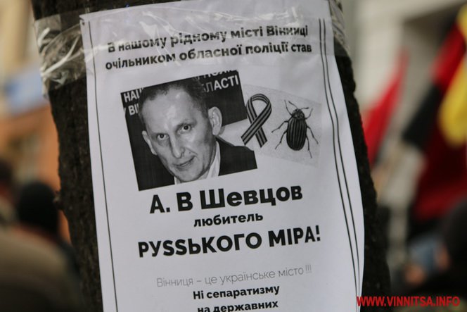 До активістів вийходив заступник начальника департаменту громадської безпеки МВС України Роман Пицьків. Натовп вимагав від нього пояснень, чому Шевцов досі не звільнив «крісло» головного поліцейського. Правоохоронець відповів, що наразі це неможливо, оскільки офіційно триває перевірки щодо звинувачень його у сепаратизмі.