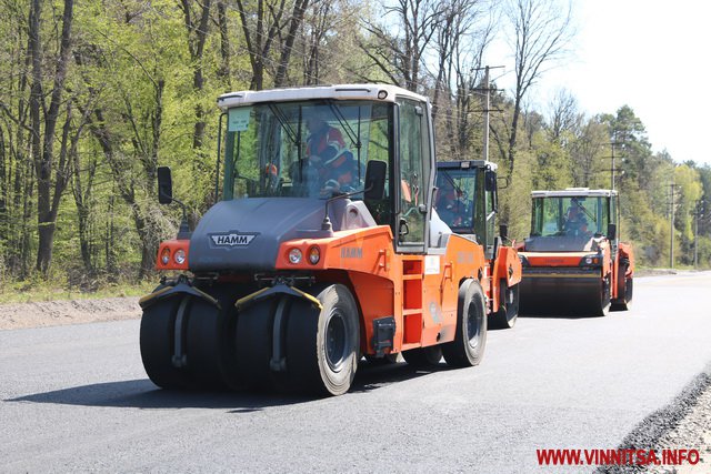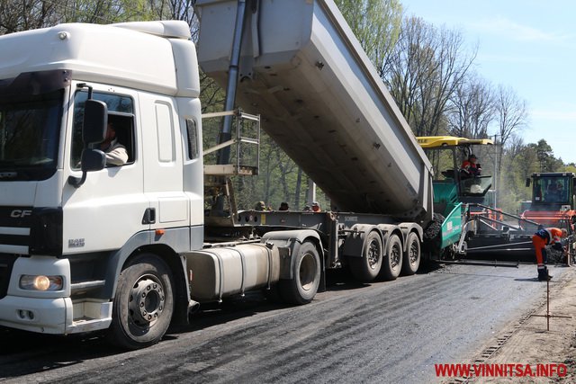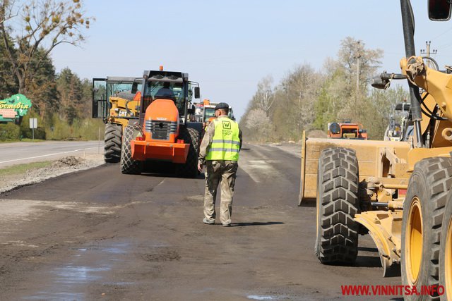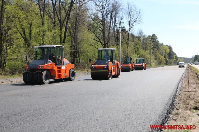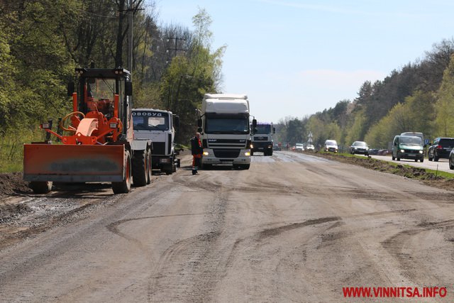 «Зараз триває ремонт траси М21 на 104 - 114 кілометрі. Всього є три об’єкти. Загальна вартість ремонтних робіт 220 млн. гривень. Існуюче дорожнє покриття зняли. З відфрезованого матеріалу виготовляється органо-мінеральна суміш з відфрезерованого матеріалу приготованого методом холодного ресайклінгу на місці, з додаванням щебенево-піщаної суміші та в’яжучих матеріалів, бітумна емульсія та цемент. Укладчиками викладається з даного матеріалу основа товщиною 18 см. Після цього укладається 10 см. нижнього шару асфальтобетону і 5 см верхнього шару асфальтобетону», - розповідає начальник Служби автомобільних доріг у Вінницькій області Ігор Корольчук.