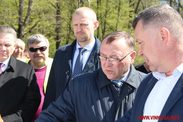 Як проводять ремонт дороги, 25 квітня під час виїзної наради дивились голова Вінницької облдержадміністрації Валерій Коровій, Вінницький міський голова Сергій Моргунов та нардеп Андрій Тетерук.