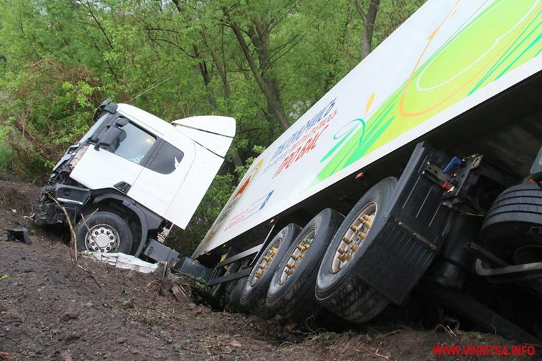 27 квітня у межах с. Ксаверівка Вінницького району на автодорозі М-12, вантажівка з’їхала в кювет.
