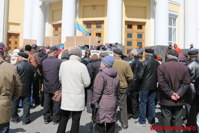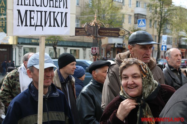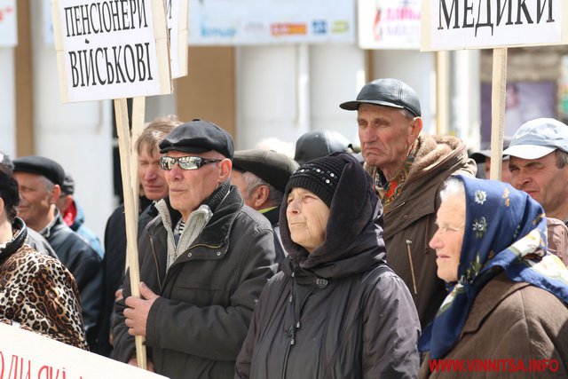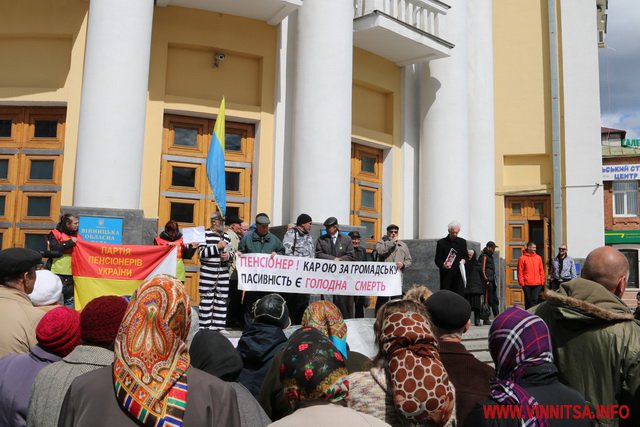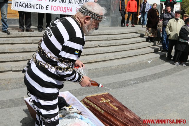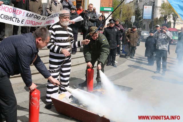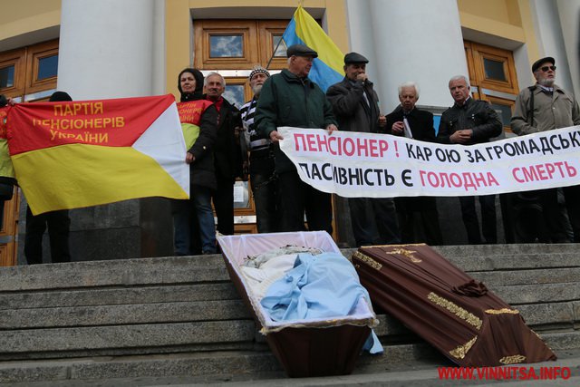 24 квітня, вранці, близько сотні вінницьких пенсіонером на чолі з «одіозним» активістом Віктором Маліновським та комуністом, екс-депутатом Іваном Бондарчуком організували акцію протесту. Центром міста пронесли пусту труну, щоб привернути увагу влади до проблем пенсіонерів.