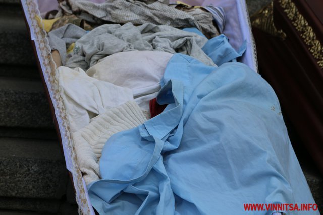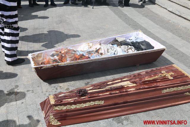 На запитання журналіста Вінниця.info про вартість «гробу», організатор акції Віктор Малиновський відповів, що то подарунок.