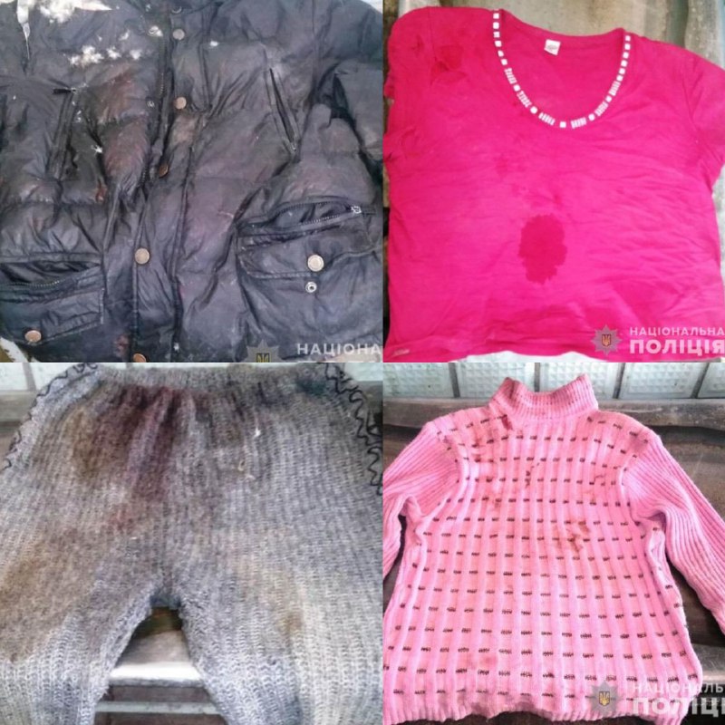 Була одягнена: куртка коротка балонова чорного кольору, рожевий светр, чорна футболка, в’язані рейтузи, чорні чоботи 40 розміру. На безіменних пальцях обох рук носила каблучки з металу білого кольору з написом «Спаси и сохрани», на шиї – дерев’яний православний хрестик на чорному шнурку.