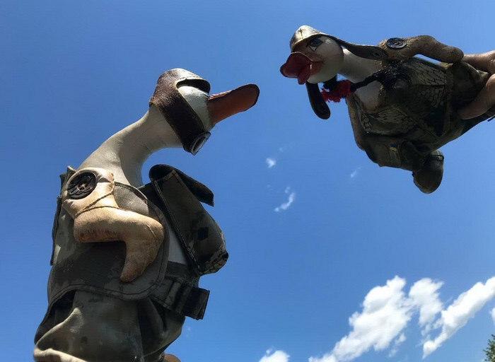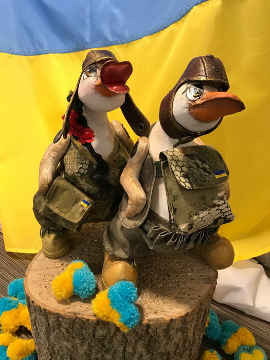«Так мене вразили такі смішні новини, що просто вирішила пошити бойового гусака та одягнути його у «піксель», з бронежилетом та балаклавою. А потім, пішло творче натхнення. Гуси у руках «полетіли» один за одним. І навіть подружжя з’явилося. Гусак та його кохана, також «бойова» гуска. Вона з таким пишним дзьобом, ну, і при жіночних формах. Але у формі», - зауважила майстриня.
