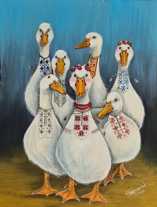 А дизайнерка Світлана Теренчук зобразила птахів у вишиванках.