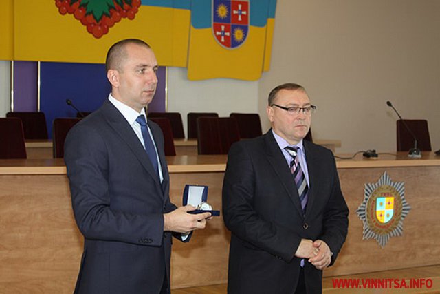 Голова Вінницької облдержадміністрації Валерій Коровій та т.в.о. начальника ГУНП області Юрій Педос вручили кращим бійцям батальйону відзнаки Верховної ради, МВС, почесні грамоти та подяки від влади та Головного управління поліції.