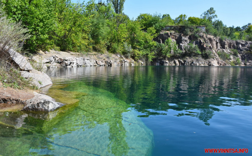 Вода в кар'єрі прозора навіть на глибині 20-ти метрів. А під водою відкриваються мальовничі пейзажі – скелі, дерева, між якими стайками плавають риби.