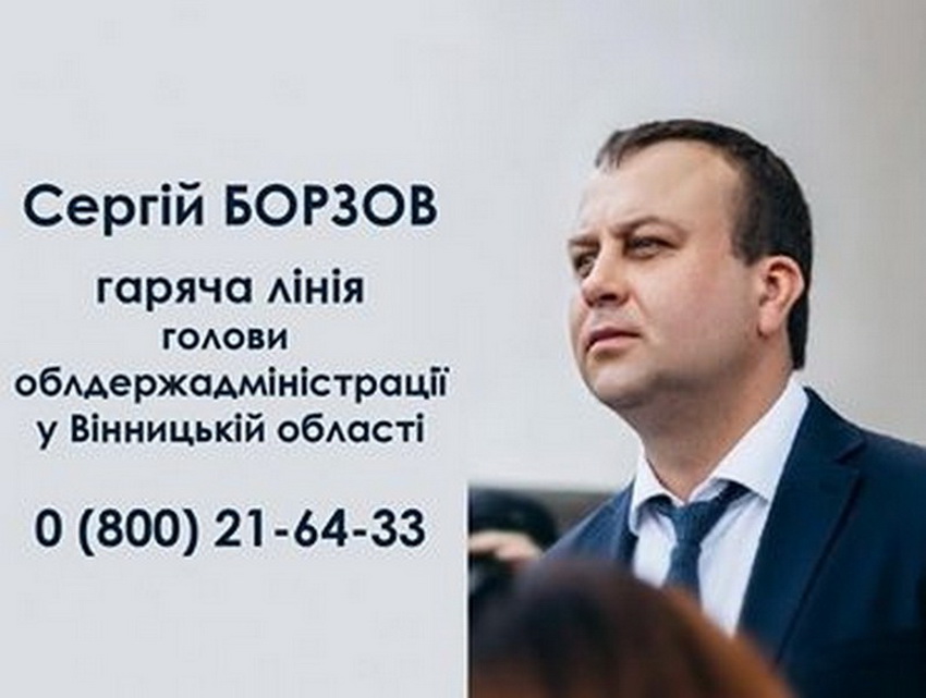 До уваги мешканців області! На Вінниччині розпочала роботу «гаряча лінія» голови облдержадміністрації Сергія Борзова: 0 (800) 21-64-33.