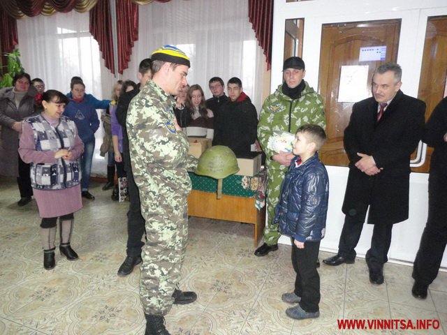 Найдорожчий у світі подарунок отримав учень 2-А класу Данило Бесараб, тато якого передав синові з передової справжню військову каску з автографами усіх товаришів по службі.