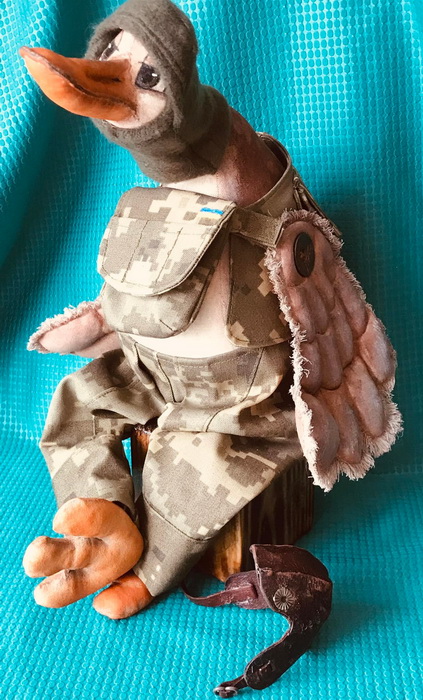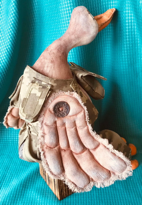 «Фігура бойового гусака вийшла сидячою, висотою, до 30 сантиметрів. Так, як я зараз займаюся пошиттям «розгрузок» та балаклав, їх пошила і для гусака. У них і одягнула птаха. Використовувала залишки тканин, які використовуємо для військових», - посміхається пані Наталія.