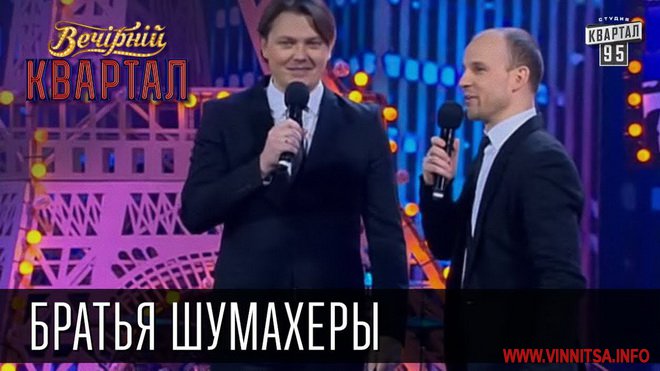 Уже совсем скоро, в среду, 23 сентября, в 19.00 в Доме офицеров пройдет концерт авторов «Квартала 95» - «Братьев Шумахеров». Знаменитые юмористы порадуют винницких поклонников своими лучшими номерами, которые после показов в программах «Вечерний Квартал», «Вечерний Киев» и «Бойцовский клуб» стали любимыми для многих телезрителей. И хоть концерт официально называется «100 минут юмора», «Шумахеры» обещают: для любимых зрителей цифра в любой момент может увеличиться.