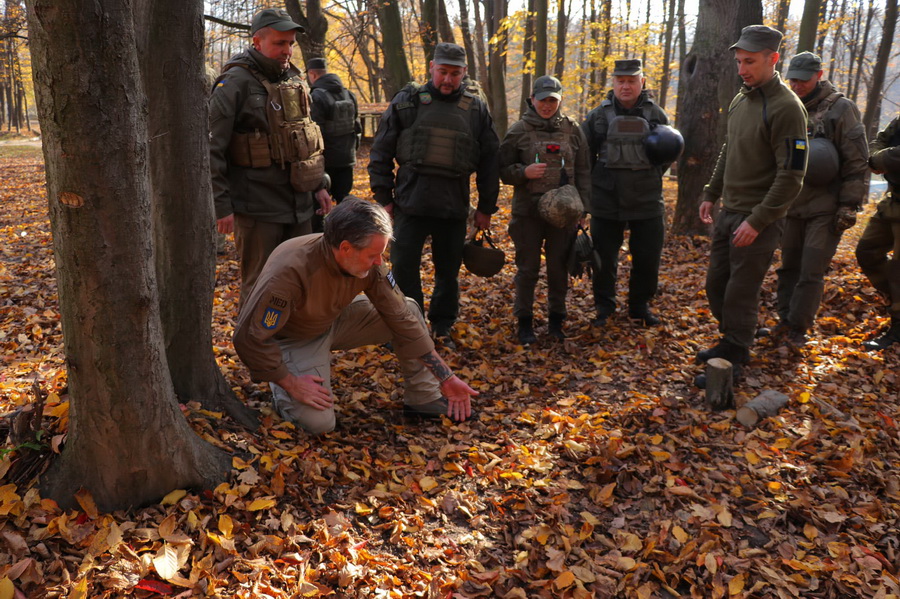 Мінні пастки, міни–сюрпризи, що залишає ворог: як розпізнавати різні вибухонебезпечні предмети та перша медична допомога у разі виникнення надзвичайної ситуації. Про виявлення та ідентифікацію мін та розтяжок розповіли британські військові фахівці гвардійцям у Вінниці.