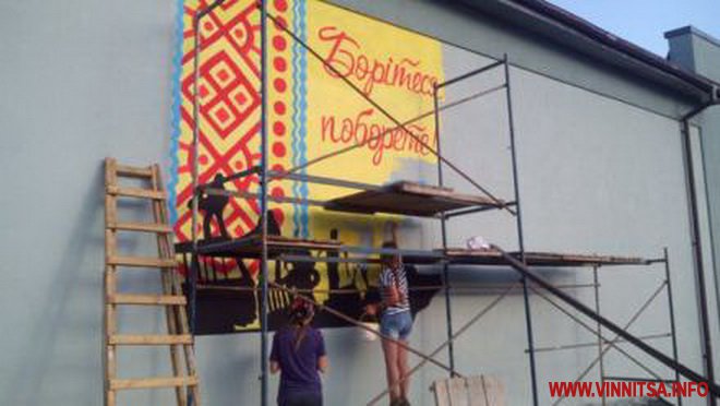 Створювати жовто-блакитне полотно на стіні почали ще 22 липня. Відділ культури повністю забезпечив митців фарбами, необхідними матеріалами та обладнанням.