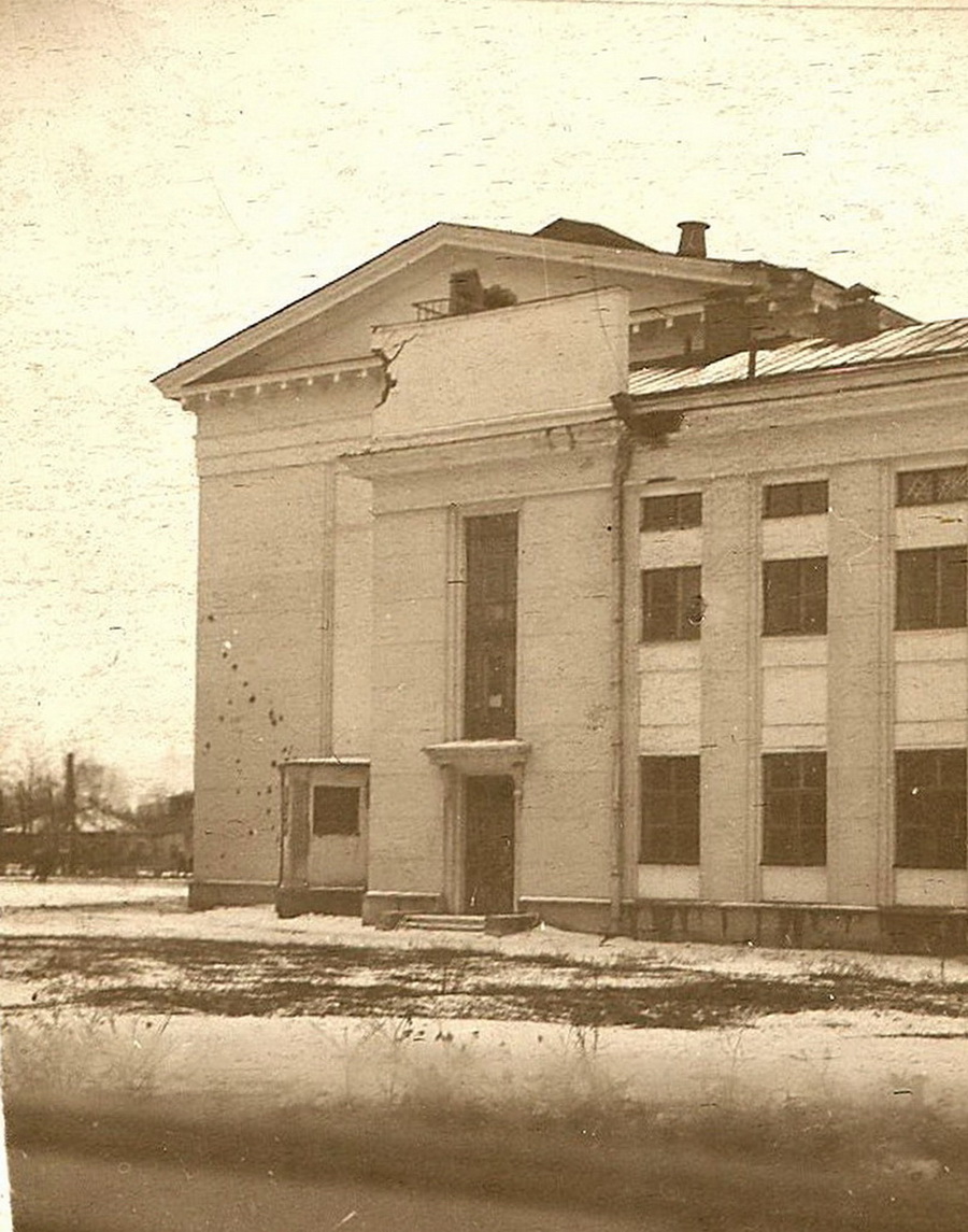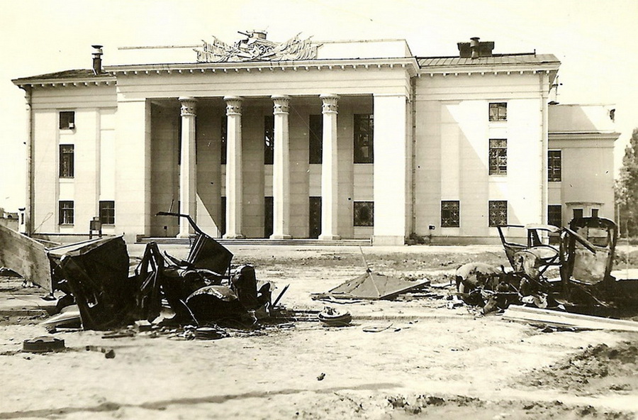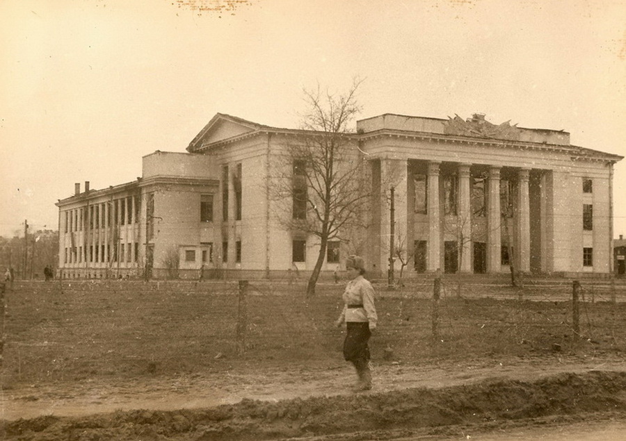 Зима 1941-42 року. На цій світлині привертає увагу пошкоджений елемент правого крила будівлі.