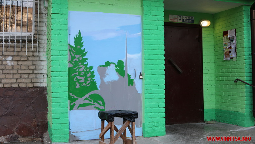 Не багатоповерхівка, а будинок арт-галерея. У Вінниці двері 108-квартирного помешкання по вул. Янгеля, 69, розмалювали символами міста. Літак, біля Будинку офіцерів, Водонапірна вежа на Оводова. В процесі арка при вході до парку Леонтовича. А на прибудинковій території облаштували парк в мініатюрі. Головний ініціатор перевтілення – 56-річний Олександр Пятих. З 2014 року він відповідальний по будинку.