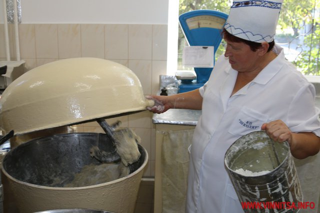 «Кожного ранку в борошняному цеху ми випікаємо свіжу випічку для 15 шкіл Вінниці, це Старе місто і Замостя. 0 7:30 машина вже вивозить першу продукцію. Продукція доставляється в школи на хлібних лотках. Кондитери починають працювати з 4 ранку. Цех у нас невеличкий 82 квадратних метра. Він забезпечує випічку у всіх цих школах. У нас всього є 50 найменувань продукції. Щоденно вона змінюється, в день виготовляється близько 10 - 15 різновидів випічки», - каже директор підприємства.