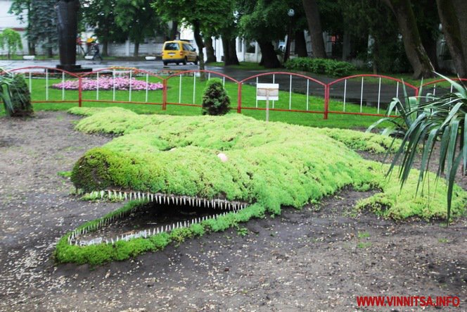 Першим працівники «Вінницязеленбуду» реанімували «Крокодила» в Центральному парку. Як ми раніше повідомляли, городяни витоптали на клумбі насадження, чимало рослин повиривали для власних потреб. Днями клумбу обгородили парканом.