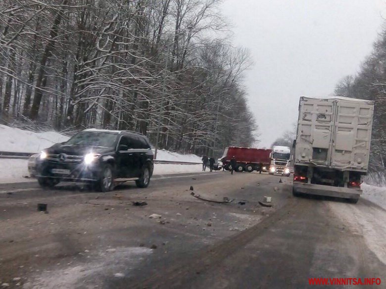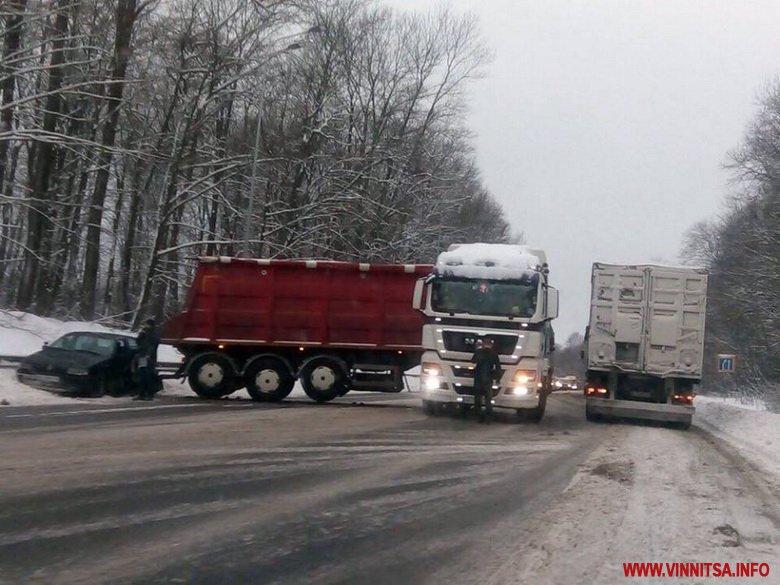 24 січня на Львівському шосе біля Вінниці сталась дорожньо-транспортна пригода, внаслідок якої два легковика опинились в кюветі, а вантажівку з причепом розвернуло посеред дороги.