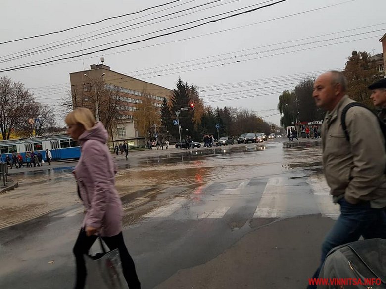 31 жовтня, близько 16 години, проїжджу частину на перехресті вулиць Келецька й 600-річчя почало заливати водою. На «зебрах» утворилися великі калюжі, через які пішоходам важко переходити дорогу.