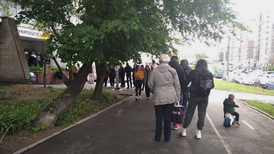 «Так, це всі за маркою», - уточнює сива пані, стоїть на вулиці, адже черга простягалась на десяток метрів від відділення.