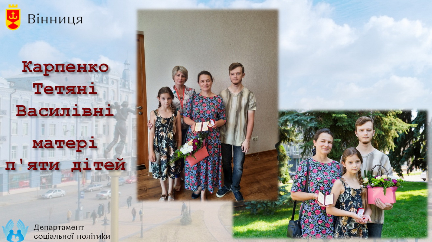 «З 2011 року виконкомом Вінницької міської ради підготовлено 129 клопотань до Вінницької обласної державної адміністрації з проханням внести подання Президенту України щодо присвоєння звання «Мати-героїня». 120 жінкам таке почесне звання присвоєно», – каже директорка департаменту соціальної політики міської ради Валентина Войткова.