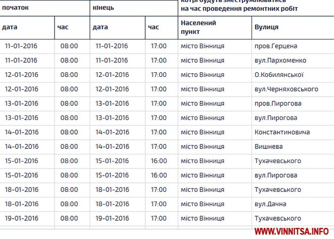 Щоб відімкнення не застало вас зненацька, ознайомтесь з графіком.