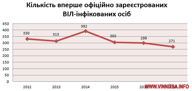 Динаміка кількості вперше офіційно зареєстрованих ВІЛ-інфікованих осіб у Вінницькій області, за останні роки має такий вигляд: