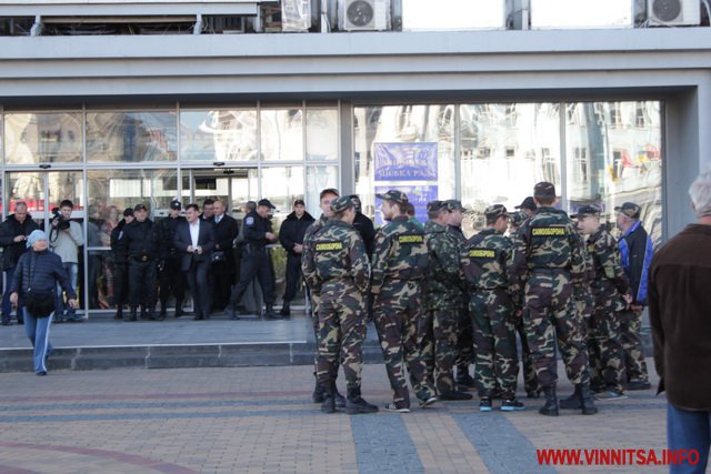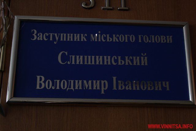 Перед тим як взяти папірці В. Слишинський попросив гостей, зокрема Євгена Вовка, який озвучив вимоги чиновникам, представитись. Євген Вовк, заступник начальника штабу Самооборони з люстрації і боротьбі з корупцією – представився активіст і додав, що називається так за наказом начальника штабу. А насправді він - Євген Завгородній.