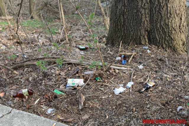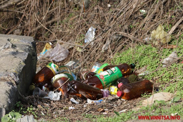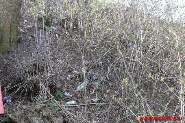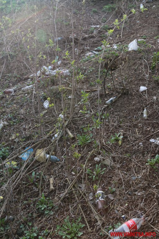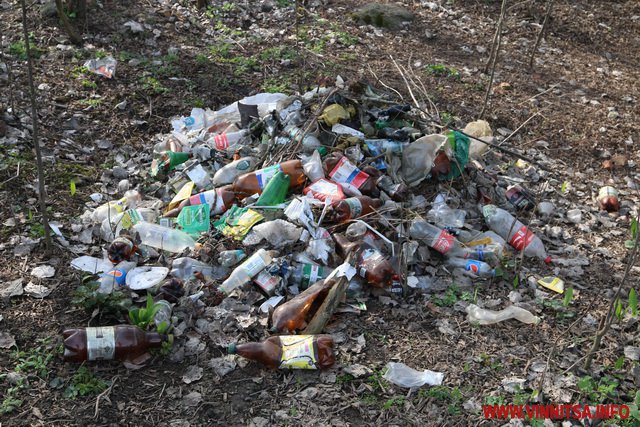 Скрізь гори пластикових пляшок, поліетиленових кульків,  розбитого скла, залишки їжі, ганчірок та інше сміття, яке залишили безвідповідальні городяни. Місцями навіть гидко проходить поруч, не говорячи про те що тут можна відпочити і насолодитися природою. Щоб дійсно знайти чисту місцевість потрібно довго її пошукати, або прибрати за попередніми «любителями» природи.