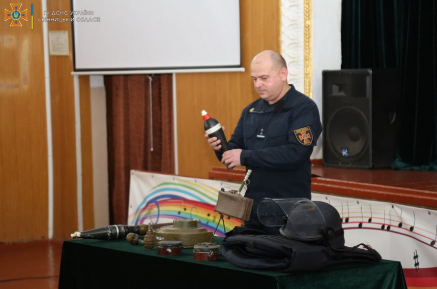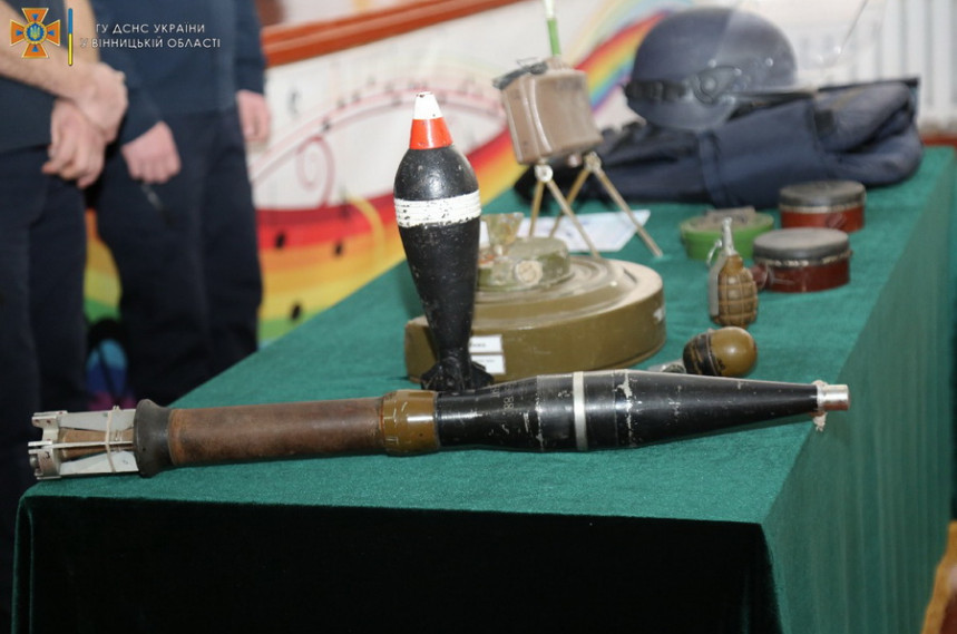Рятувальники Вінниччини звернули увагумолоді на місця, де громадяни часто виявляють небезпечні предмети часів минулих війн, серед них: лісосмуги, водойми та присадибні ділянки. А піротехніки підліткам муляжі найпоширеніших небезпечних предметів, здебільшого це снаряди часів війни.