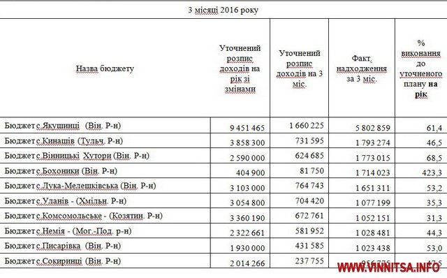 Отже, традиційно найзаможнішим селом Вінниччини залишаються Якушинці. Які минулого року отримали понад 19 млн грн. до свого бюджету. Але і села інших районів, досить віддалених від центру не пасуть задніх. Є надія, що завдяки ремонту та будівництву доріг, на які у бюджеті країни передбачено 19 млрд грн. спроможність сіл залучати додаткові кошті у бюджети громад протягом наступного і поточного років суттєво зростуть.