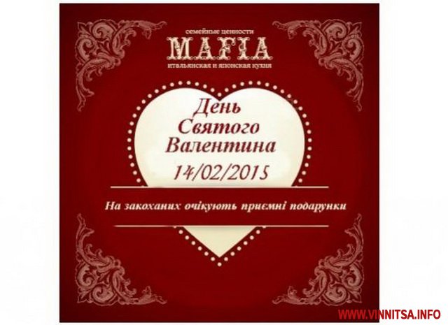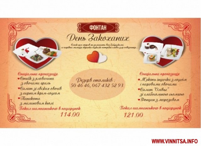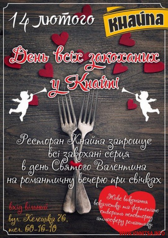 Вже зараз вінничани задаються питанням, де відсвяткувати День Святого Валентина. Адже 14 лютого - день, в який кожна закохана людина відкладає усі справи, аби провести час зі своєю половинкою. От тільки де святкувати - оце справжня проблема, якщо про це не потурбуватися завчасно.