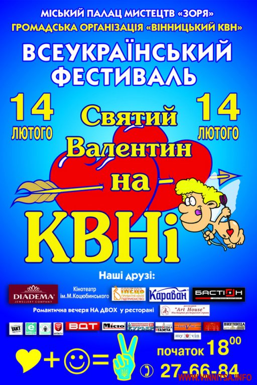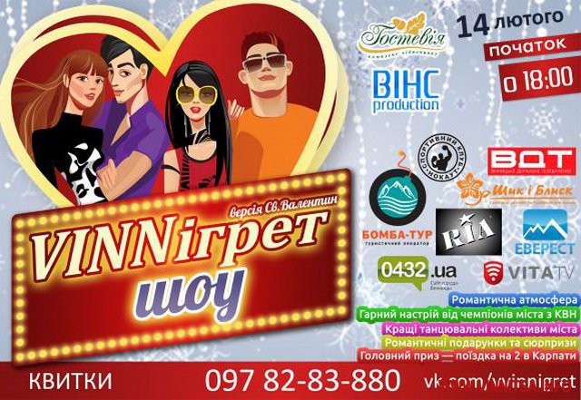Редакція ВИННИЦА.info пропонує різнопланові заходи у Вінниці, де можна було б відзначити свято та усамітнитися зі своїми коханими. На будь який смак знайдуться заходи у чарівному і романтичному місті Вінниці, для любителів вечірок є великий вибір нічних клубів, для любителів затишку – ресторани, для естетів – театри.