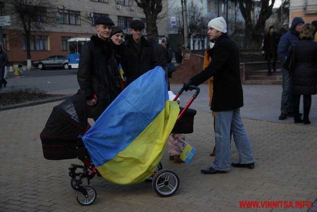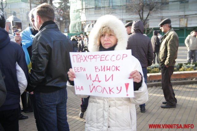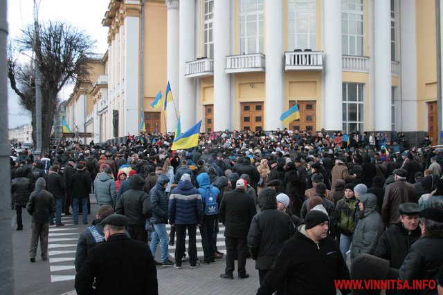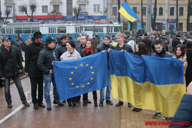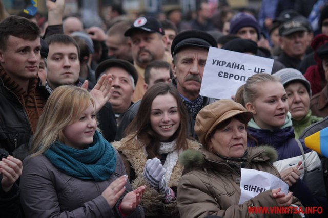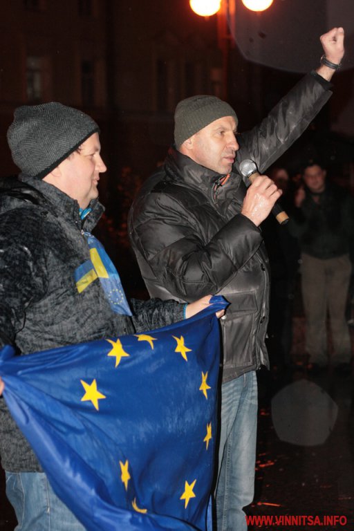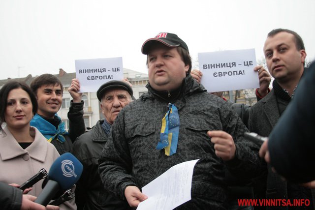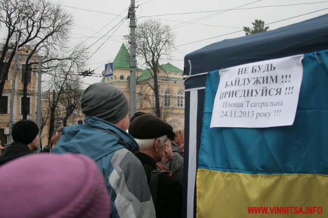 22 листопада 2013 року півтисячі городян вийшли в центр Вінниці, щоб висловитись проти рішення уряду Януковича і Азарова щодо призупинення підписання угоди про асоціацію з ЄС. Це була перша багатолюдна акція протесту у Вінниці з часів «Помаранчевої революції». Холод і дощ не стали на заваді.