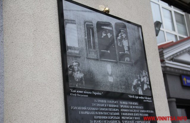 Після офіційної зустрічі у Вінниці на Площі Героїв Сталінграду делегація урочисто відкрила меморіальну дошку, присвячену зустрічі Маршалка Юзефа Пілсудського та Головного отамана військ УНР Семена Петлюри.