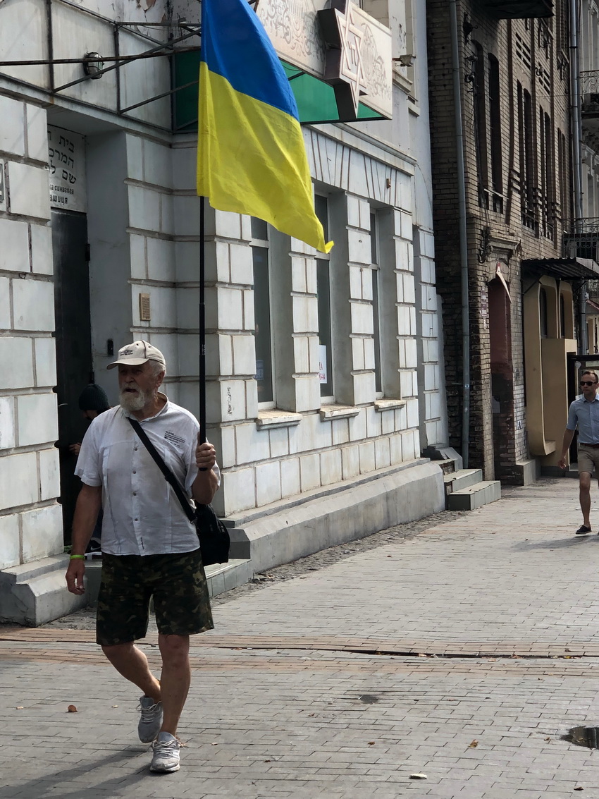 Цікаво, що один з учасників мітингу – Анатолій Чайка, встиг на всі ранкові заходи – і до мерії, і до ОДА. З прапором він пройшовся перед урочистостями на Майдані Незалежності, потім попрямував зі стягом Соборною і сів на сходах ОДА.
