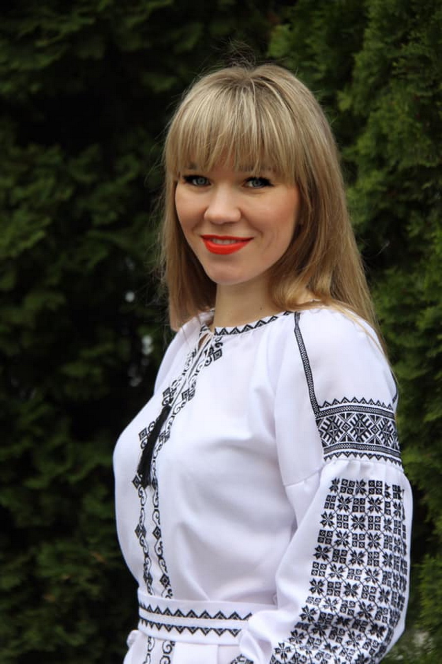А який орнамент на вишиванці пані Людмила, вона добре знає, адже вишивала чорно-червоні троянди на сорочці сама.