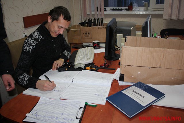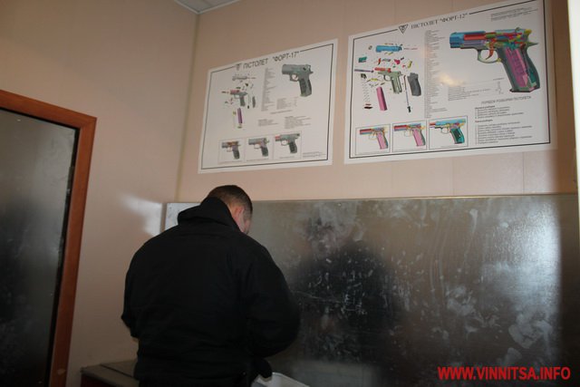 У кімнату отримання зброї може заходити лише одна людина. Кожен з півсотні поліцейських, які виходять сьогодні на патруль заряджає табельні пістолети «Форт-17». У черзі два десятки правоохоронців. Запитую, о якій годині прокинулися, щоб доїхати на роботу. Адже управління знаходиться на околиці Вінниці по вул. Ботанічна, на місці колишнього обласного ДАІ.