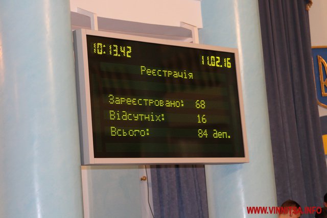 На початку сесії зареєструвались 68 депутатів, шляхом підняття рук. Потім відбулось голосування за те щоб працювати під час сесійного засідання і проводити підрахунок голосів за допомогою системи «Рада», яка була встановлена ще в 2004 році. Аналогічна система голосування встановлена у Верховній Раді України. За кожним депутатом закріплено місце, обладнане електронним пультом для голосування, запису на виступ, мікрофоном, міні-монітором, мікрофоном  для виступу з місця. Всі результати голосувань виводяться а екран, вони є поіменними і виборці бачать які рішення приймає кожен обранець.