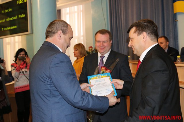 Перед розглядом питань порядку денного, депутатами облради урочисто вручили нагороди державного рівня – орден депутату від БПП Павлу Каленічу, та Грамоти і Подяки депутатам.