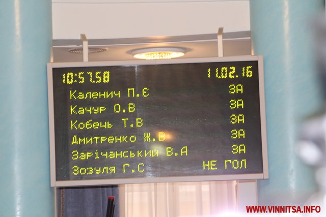 Після двогодинного засідання, після перерви, за результатами обговорень, депутати затвердили Регламент облради, яким передбачено, що пленарні засідання Ради проводити не лише у сесійній залі за адресою: вул. Соборна,70, м. Вінниця, а також і в іншому місці. Рішення про пленарні засідання Ради в іншому приміщенні можуть також проводитися за рішенням Ради, прийнятим на її засіданні більшістю депутатів від загального складу Ради у встановленому Регламентом порядку. Кількість відвідувачів на балконі не повинна перевищувати 108 осіб, відповідно до технічних можливостей. Заходити на балкон будуть в порядку черги, хто не встиг – можуть спостерігати за прямою трансляцією сесії в холі облради. Для депутатів визначені місця, ніхто окрім депутатів, займати їх не має права. Окрім того виступаючих під час сесії, зобовязали говорити державною мовою.