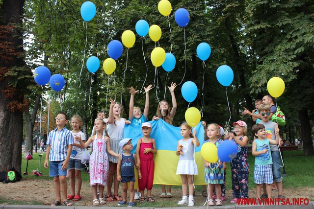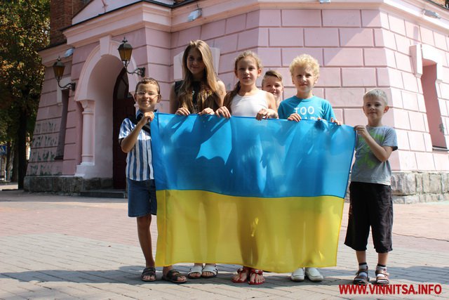 15 серпня у Вінниці розгорнули «Прапор миру», на якому діти писали побажання бійцям.