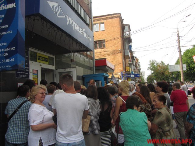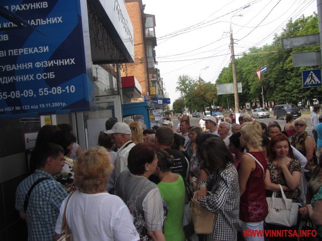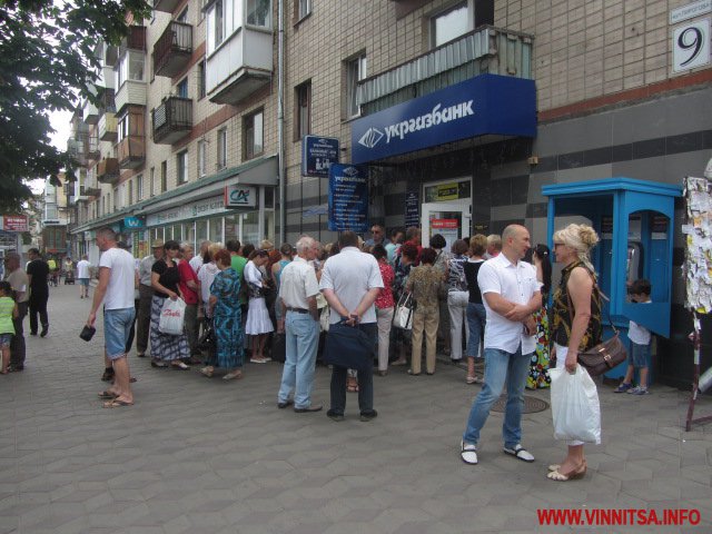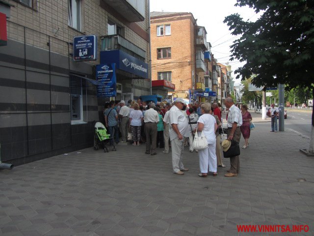 Перший вінничанин який вийшов з купюрами в руках з відділення не міг стримувати радість. Він розповів що записався в чергу ще звечора, приїхав зранку і у відділенні його відразу зареєстрували, потім він заповнив анкети і через касу йому видали суму в межах 10 тисяч гривень.