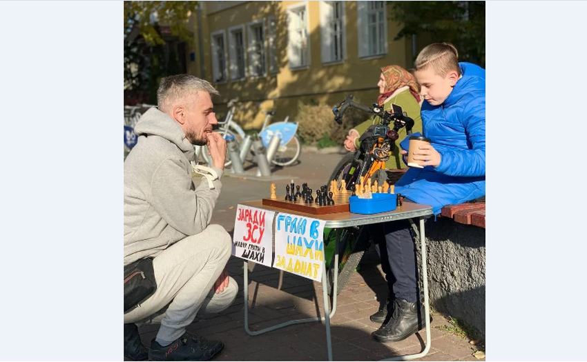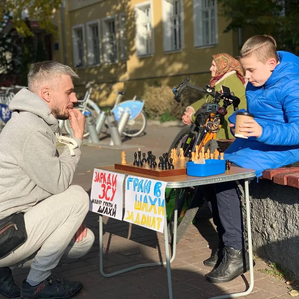 Другі вихідні поспіль вінничанин Дємід Круглов приходить до Вежі на Європейську площу зі столиком та своїми шахами й запрошує перехожих до батлу. Минулими вихідними юному шахісту вдалася зібрати понад 800 гривень. Їх він задонатив на ЗСУ.