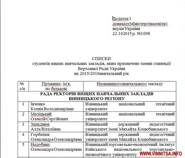 Зокрема, іменну стипендію Верховної ради призначено дев’ятьом студентам Вінниччини: