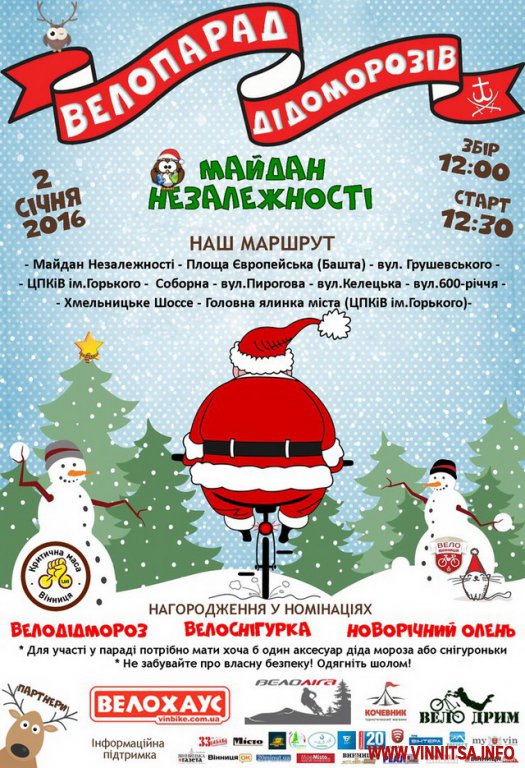 2 січня у Вінниці пройде «Велопарад ДідоМорозів», стартує він з майдану Незалежності.